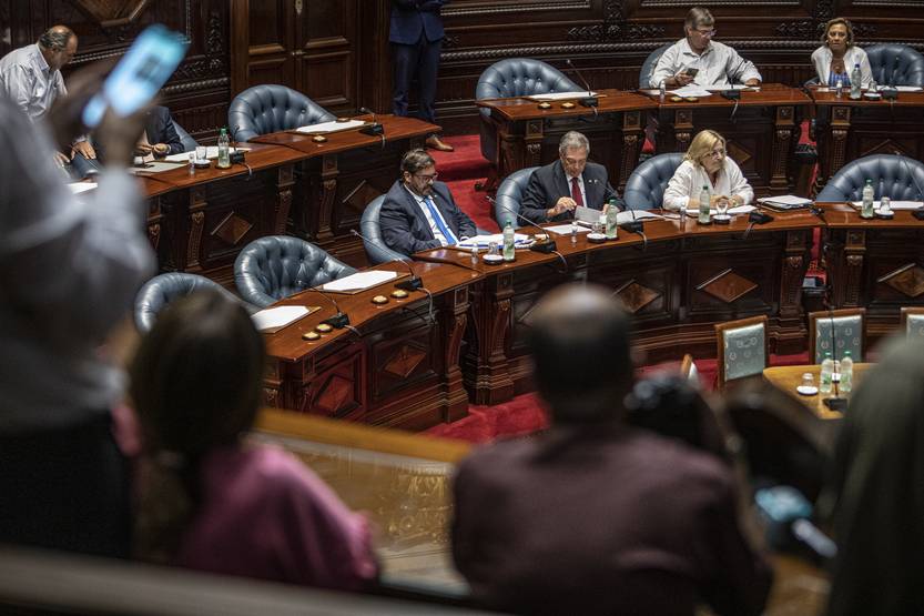 Ignacio Buffa, Fernando Mattos y Graciela Bianchi, el jueves 2 de febrero, en la Cámara de Senadores.