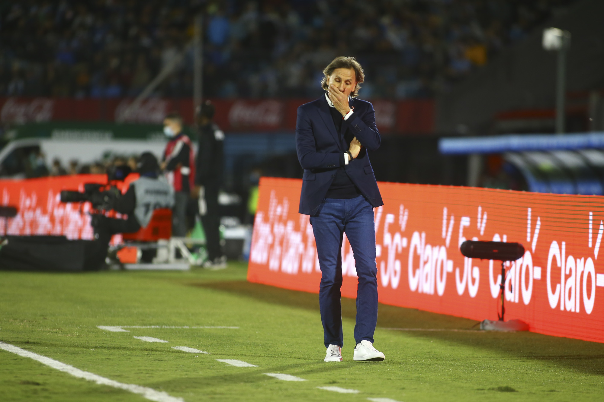 Ricardo Gareca dirigiendo a Perú, en el estadio Centenario. (archivo, marzo de 2022)