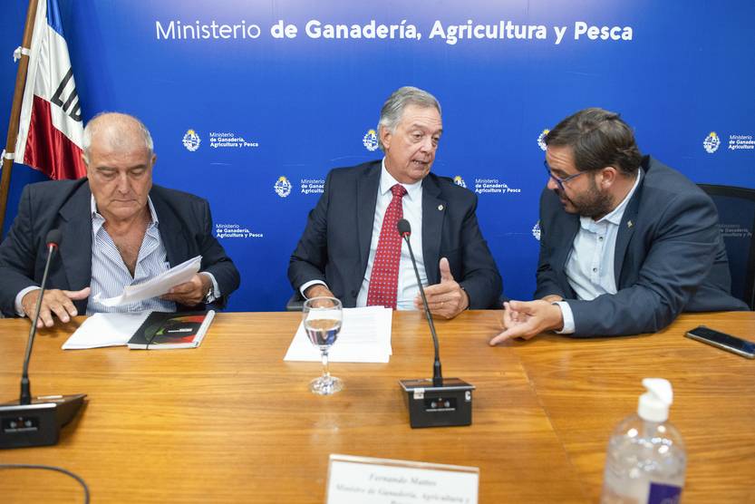 Diego de Freitas, Fernando Mattos e Ignacio Buffa, el 15 de febrero, en el Ministerio de Ganadería Agricultura y Pesca.