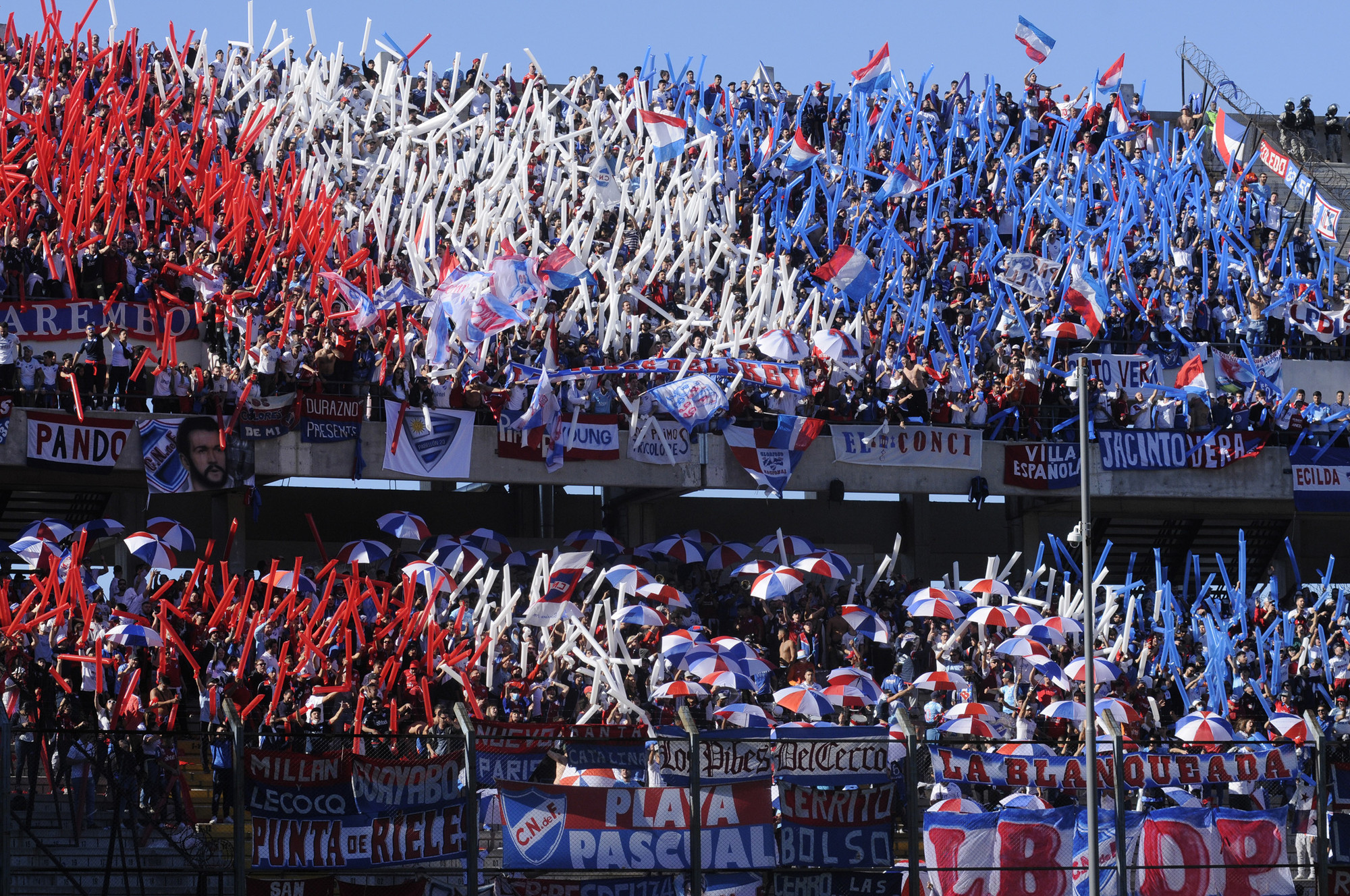 Hnchas de Nacional, durante un clásico por el campeonato Apertura del fútbol uruguayo, en el estadio Campeón del Siglo (archivo, mayo de 2019).
