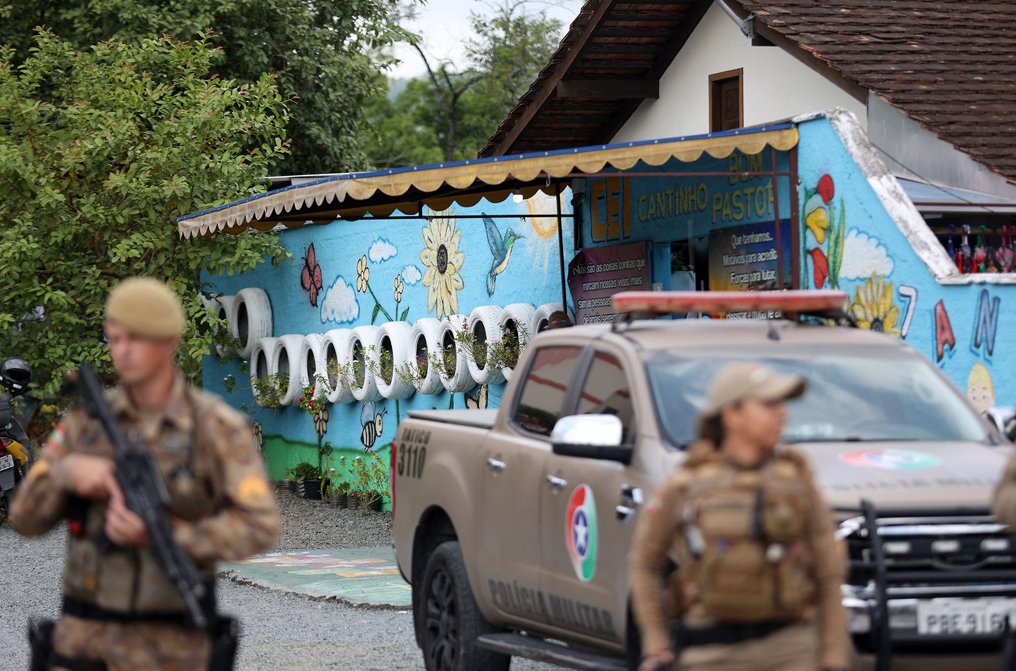 Frente al jardín de infantes, el 5 de abril, en Blumenau, estado de Santa Catarina, en el sur de Brasil. Foto: Anderson Coelho / AFP