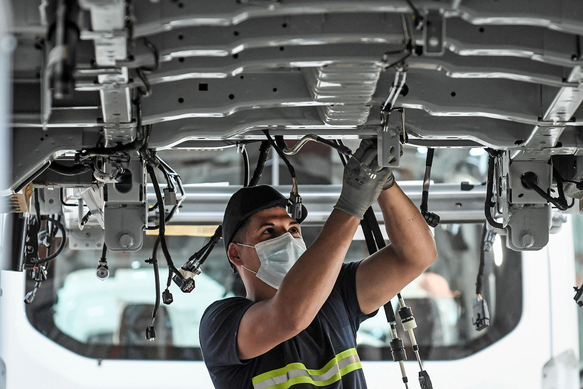 Montaje del modelo Ford Transit en la planta de Nordex, en Montevideo (archivo, noviembre de 2021).