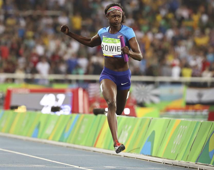 Tori Bowie, durante la final de los 4x100 de los Juegos Olímpicos de Río de Janeiro, el 19 de agosto de 2016.