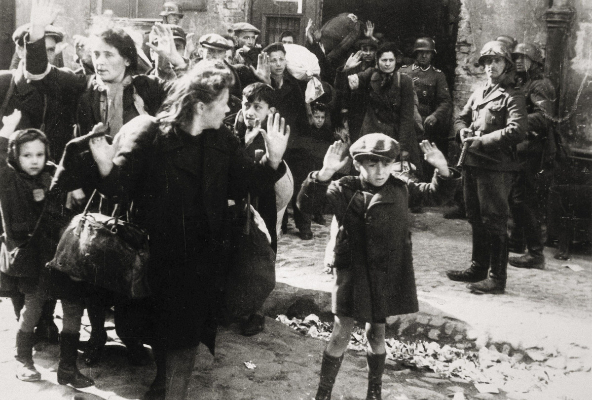 Judíos durante un operativo alemán en el gueto de Varsovia, abril-mayo de 1943.