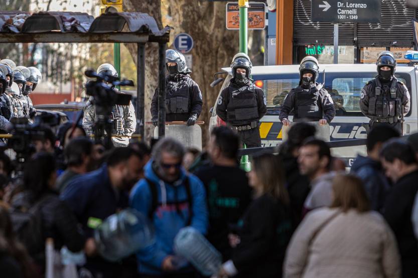Manifestación en la sede de la Administracion Nacional de las Obras Sanitarias del Estado, el 13 de junio.
