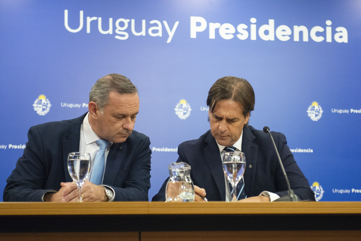 Álvaro Delgado y Luis Lacalle Pou, durante la conferencia de prensa, el lunes 19 de junio, en la Torre Ejecutiva.