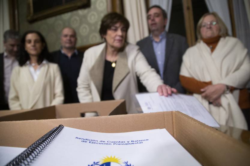La ministra Arbeleche entregó el mensaje de Rendición de Cuentas en el despacho de la presidencia de la Asamblea General.