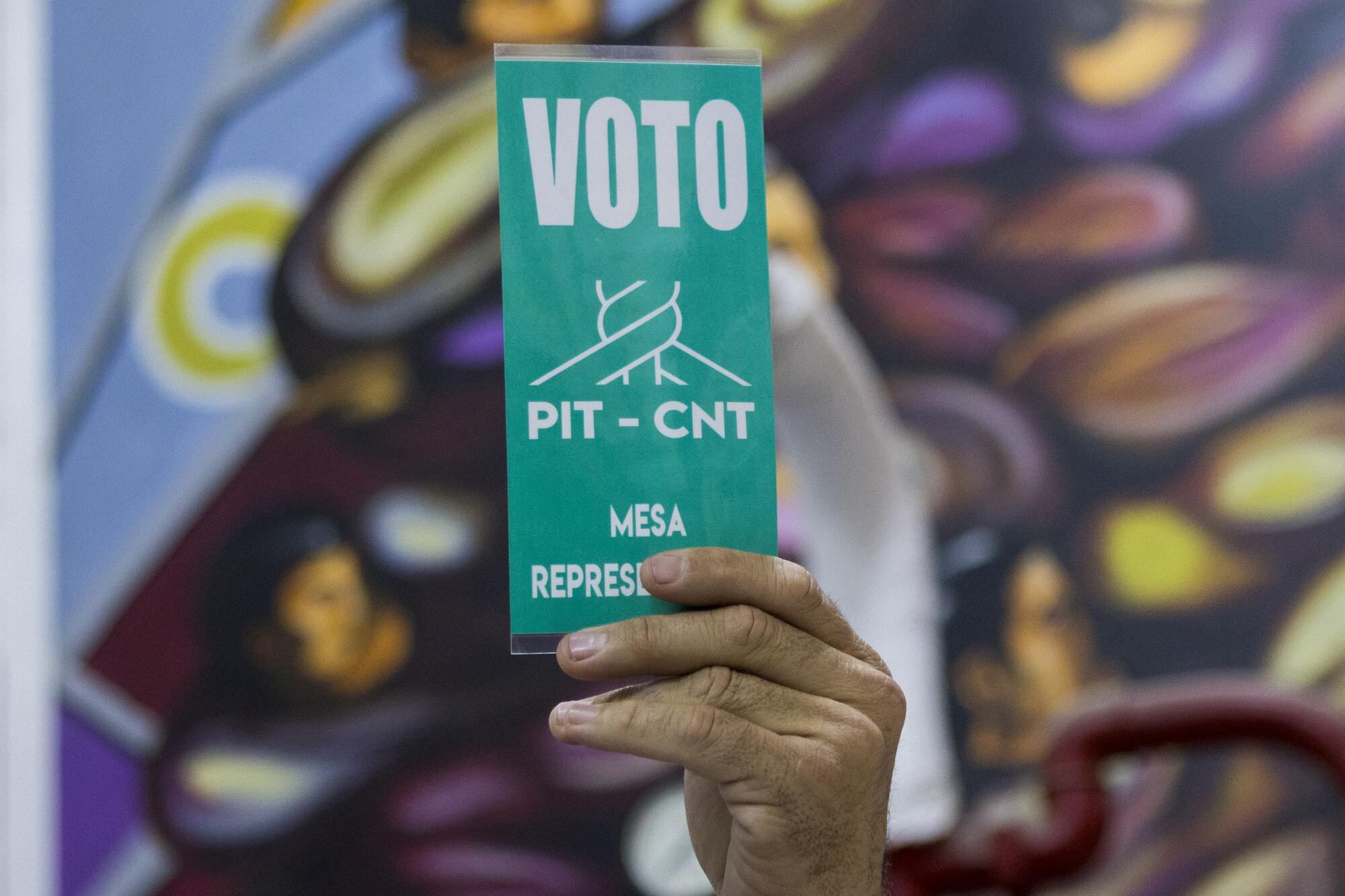 Durante la votación para la realización de un plebiscito para derogar la reforma de la Seguridad Social, el 10 de agosto, en el PIT-CNT, en Montevideo.