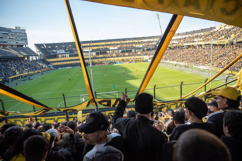 Hinchada de Peñarol en la tribuna Cataldi del estadio Campeón del Siglo (archivo, mayo de 2023).