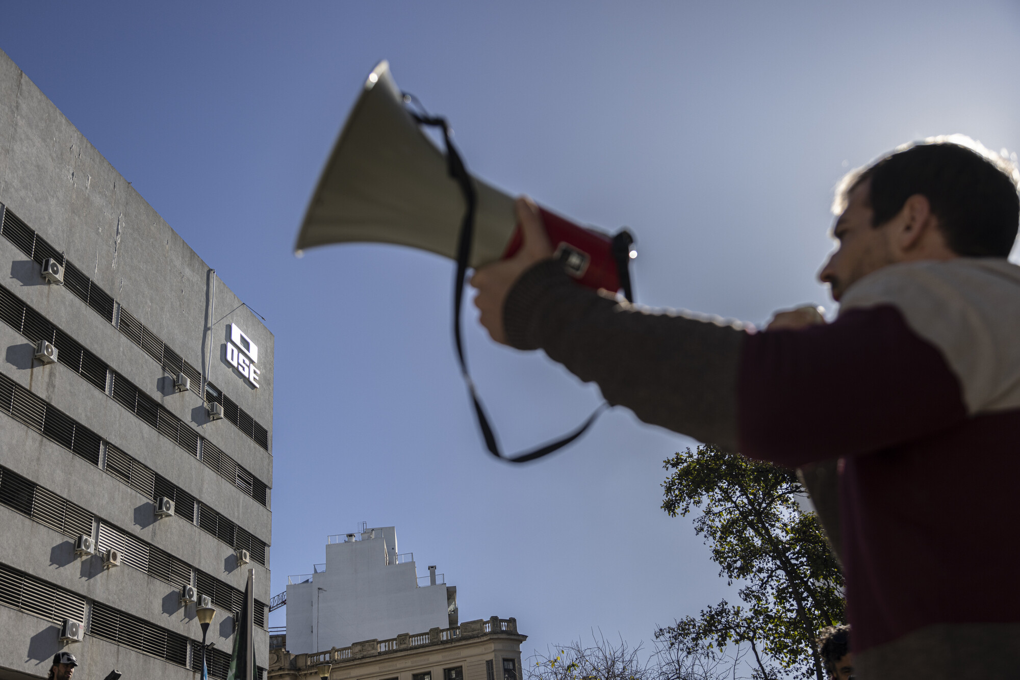 Movilización de FFOSE, en la explanada de OSE. (archivo, junio de 2023)