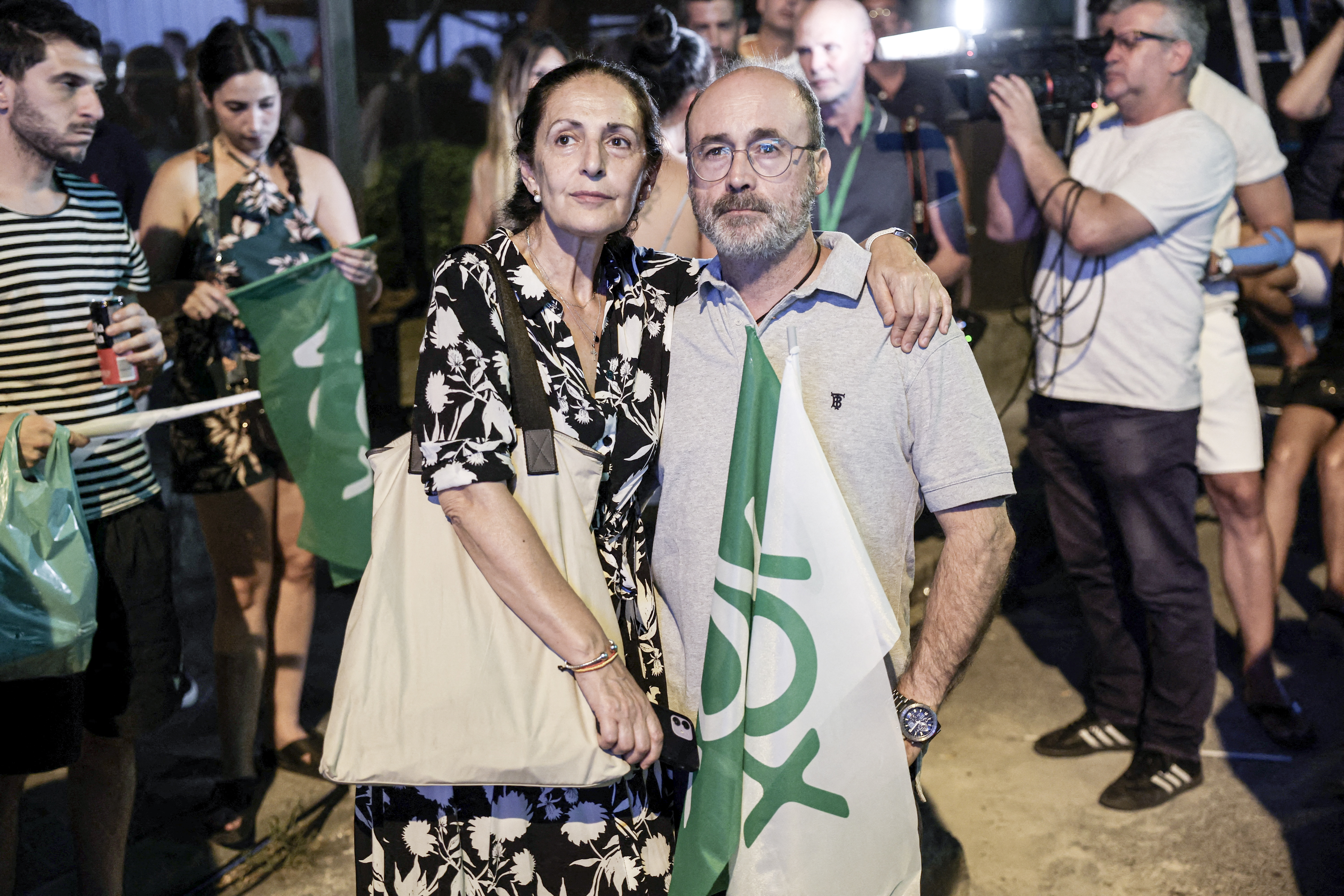 Partidarios de Vox, esperan los resultados de las Elecciones Generales , el 23 de julio, en Madrid, España.