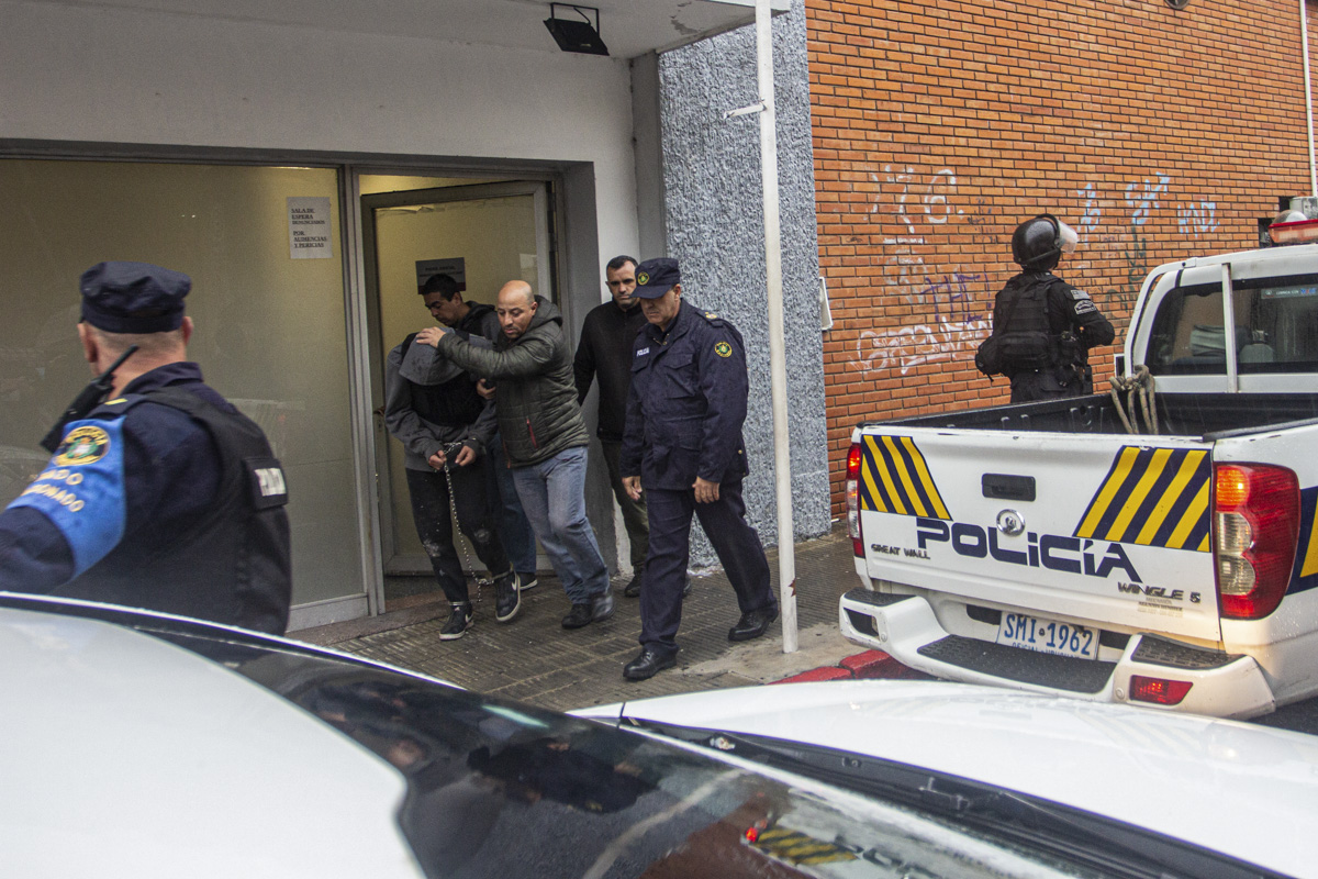 Salida del joven imputado por el femicidio de Valentina Cancela de la sede judicial.
