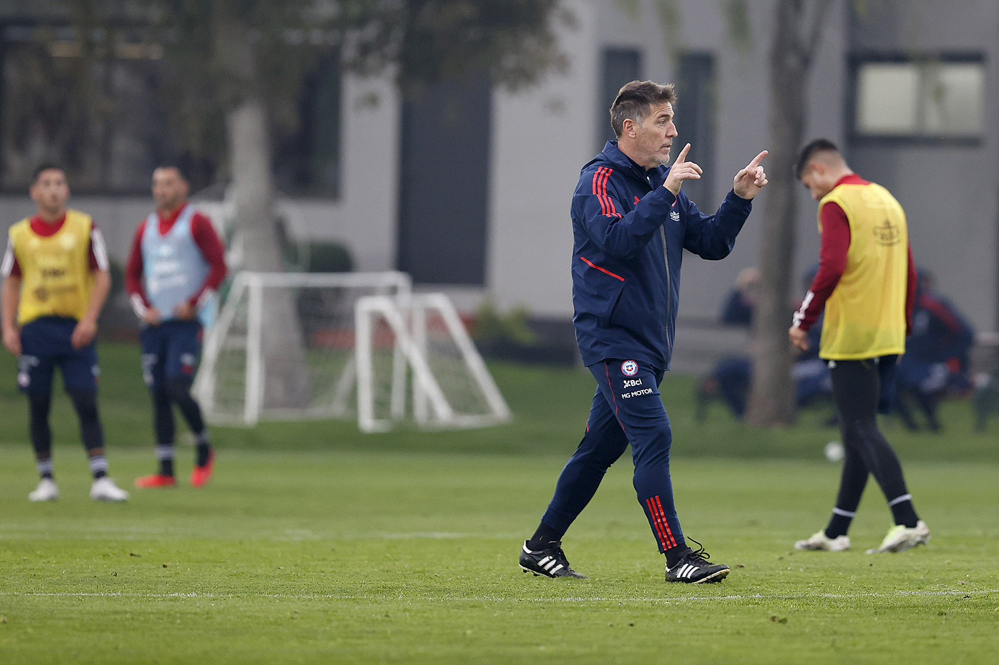 Eduardo Berizzo, duranate un entrenamiento de la selección de Chile, el 5 de setiembre, en el complejo Juan Pinto Durán en Santiago. Foto: Federación de Fútbol de Chile, EFE
