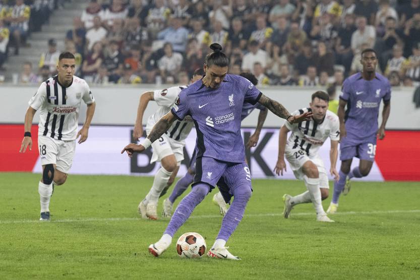 Darwin Núñez, de Liverpool, durante el partido del Grupo E de la UEFA Europa League ante Linzer ASK en Linz, Austria.