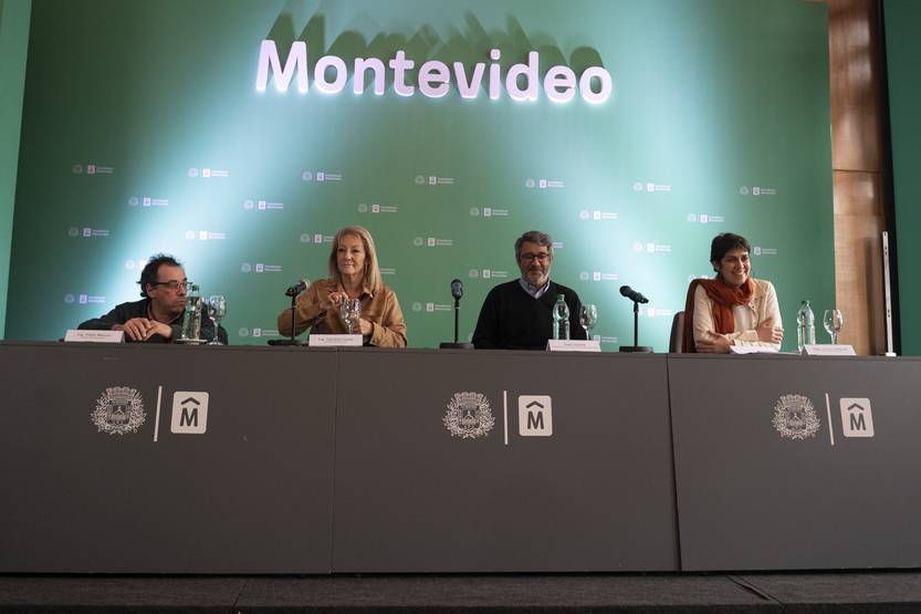 Pablo Menoni, Carolina Cosse, Justo Onandi y Verónica Piñeiro, el 22 de setiembre, durante la conferencia de prensa en la Intendencia de Montevideo.
