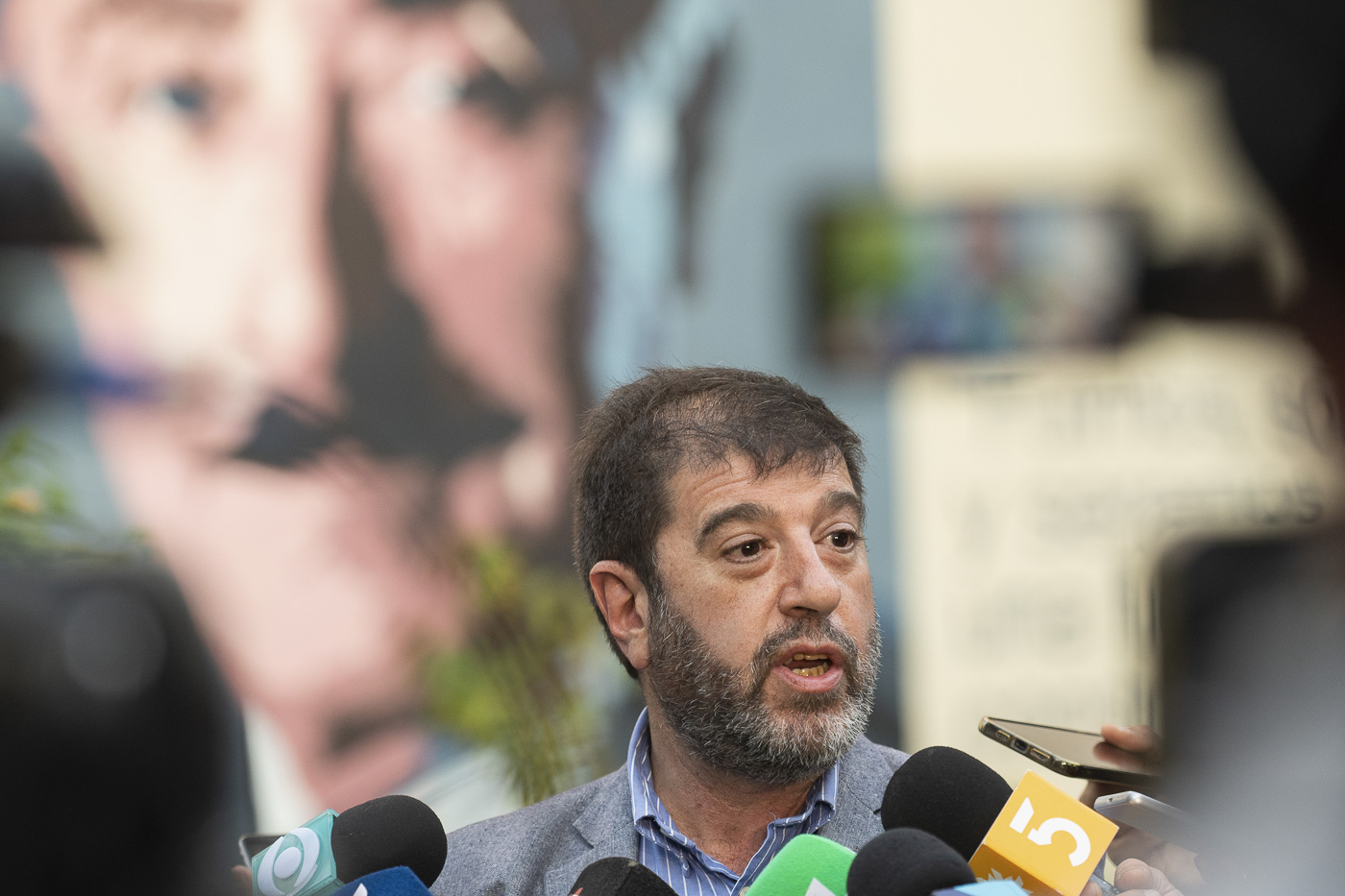 El presidente del Frente Amplio, Fernando Pereira tras la mesa política del Frente Amplio.