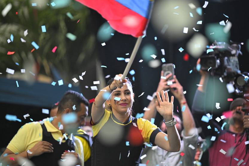 La candidata presidencial de Ecuador por el partido Revolución Ciudadana, Luisa González, durante su acto de cierre de campaña en Guayaquil, el 12 de octubre.