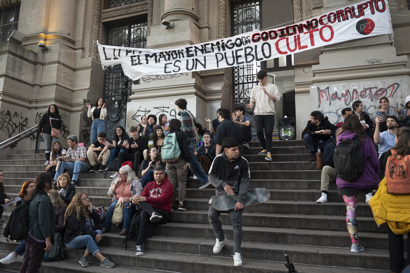 Concentración de alumnos y docentes del liceo IAVA (archivo, noviembre de 2023).