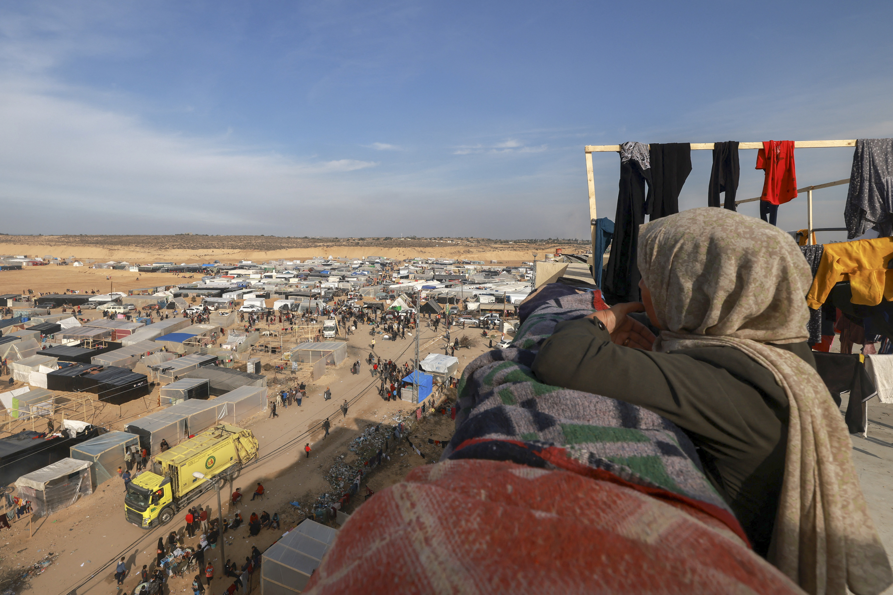 Campamento de palestinos desplazados que huyeron de Jan Yunis, el 7 de diciembre, en Rafah.