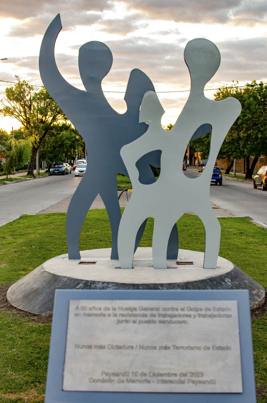 Escultura de Wilson Bueno en el Memorial que conmemora los 50 años de la Huelga General quedó inaugurado en Paysandú.