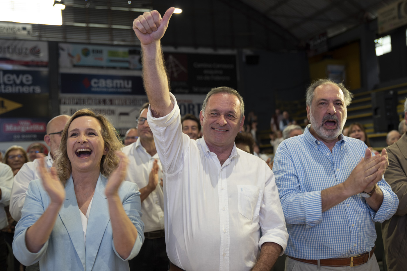 Laura Raffo, Álvaro Delgado y Jorge Gandini, durante la convención del Partido Nacional, el 9 de diciembre.