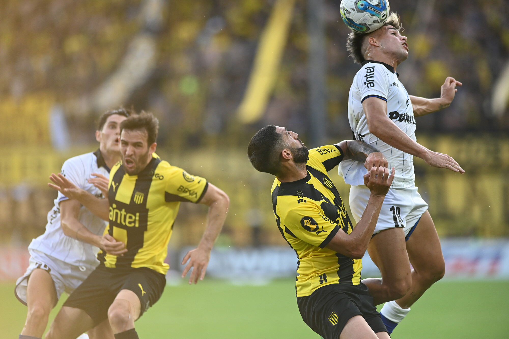 Hernán Menosse, de Peñarol, Alan Medina, de Liverpool, el 16 de diciembre, en el estadio Campeón del Siglo.