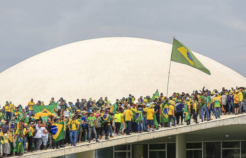 Partidarios del expresidente brasileño Jair Bolsonaro, invaden el Congreso Nacional, el 8 de enero de 2023, en Brasilia.