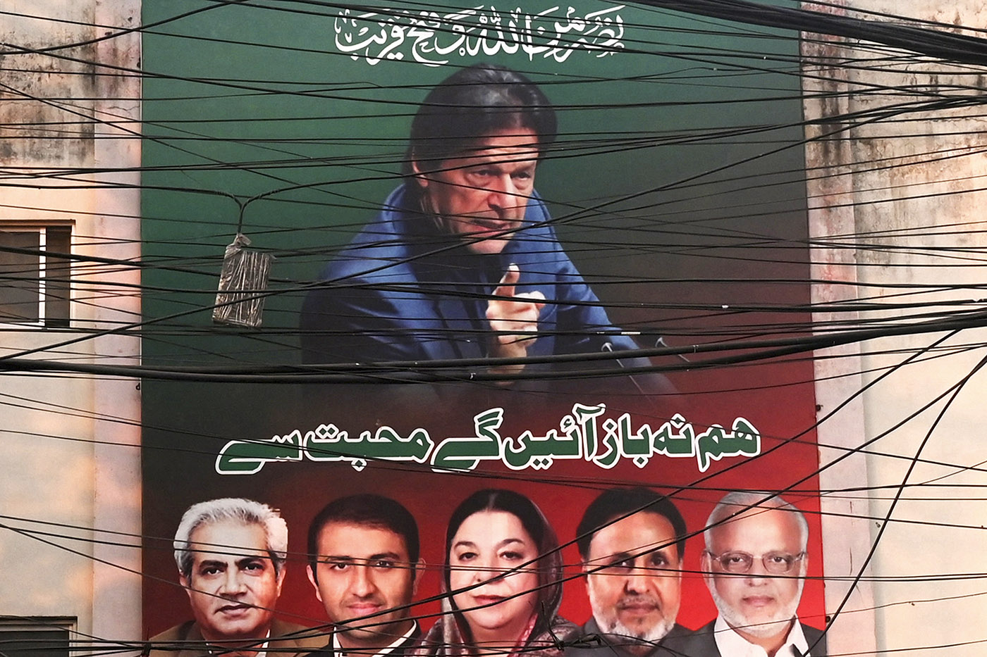 Poster del ex primer ministro de Pakistán, Imran Khan, en Lahore el 18 de diciembre de 2023.