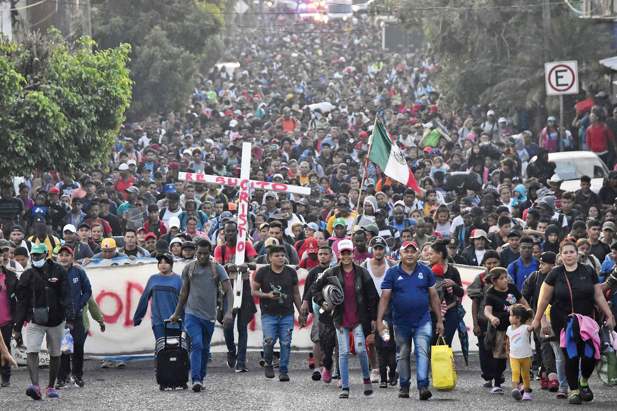 Migrantes participan en una caravana hacia la frontera con Estados Unidos, el 24 de diciembre, en Tapachula, estado de Chiapas, México.