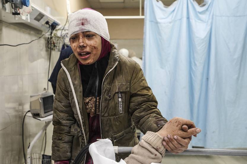 Una niña palestina junto a su madre, heridas en un ataque israelí, en el hospital Nasser de Khan Yunis, en el sur de la Franja de Gaza, el 28 de diciembre.