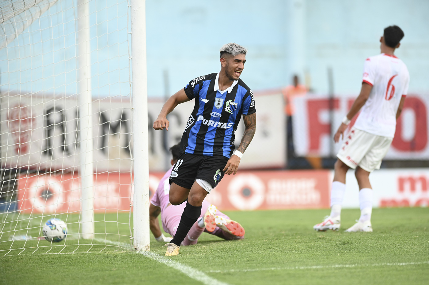 Matías Ocampo, de Liverpool, tras convertir ante Huracán de Parque Patricios en el estadio Belvedere.