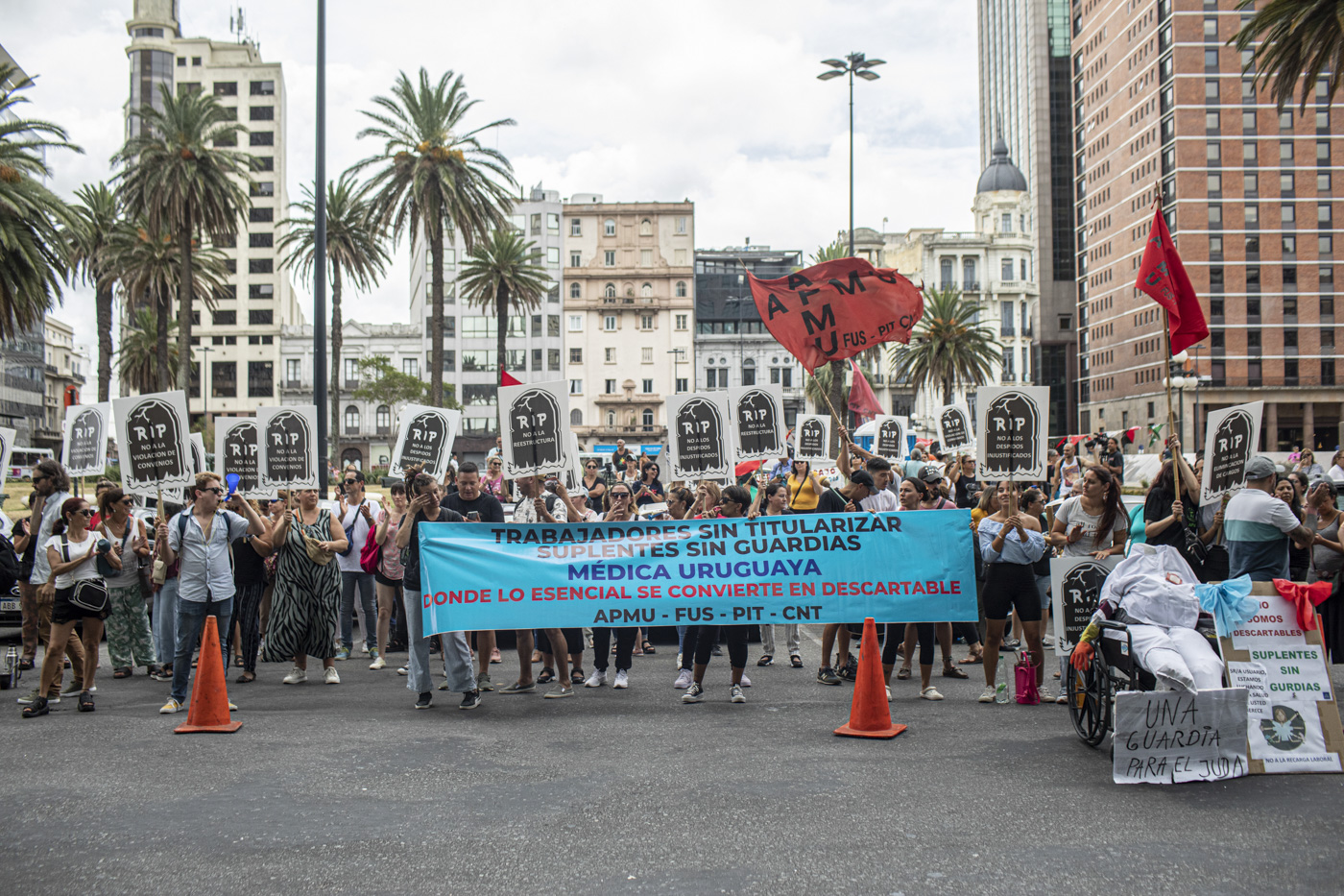 Movilización de trabajadores de Médica Uruguaya (archivo, febrero de 2023).