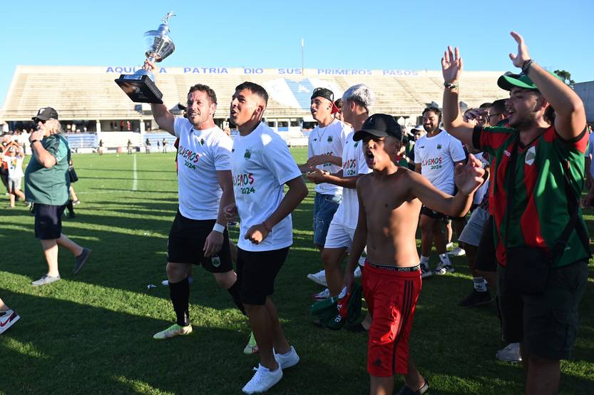 Los jugadores de Rampla festejan el ascenso a la Primera División Profesional, el sábado 27 de enero, en el estadio Parque Artigas.