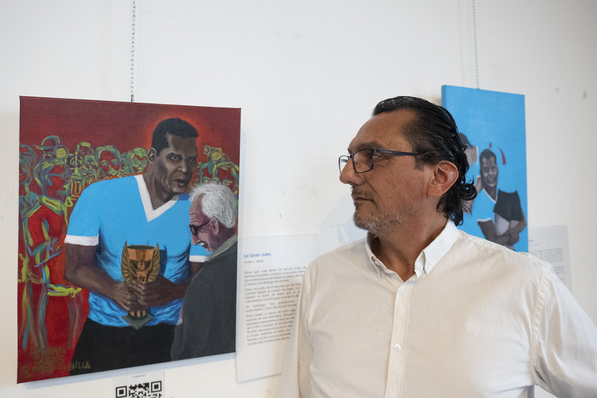 Ramón Cubilla junto a su obra, Obdulio Varela, en el Centro Cultural Goes.