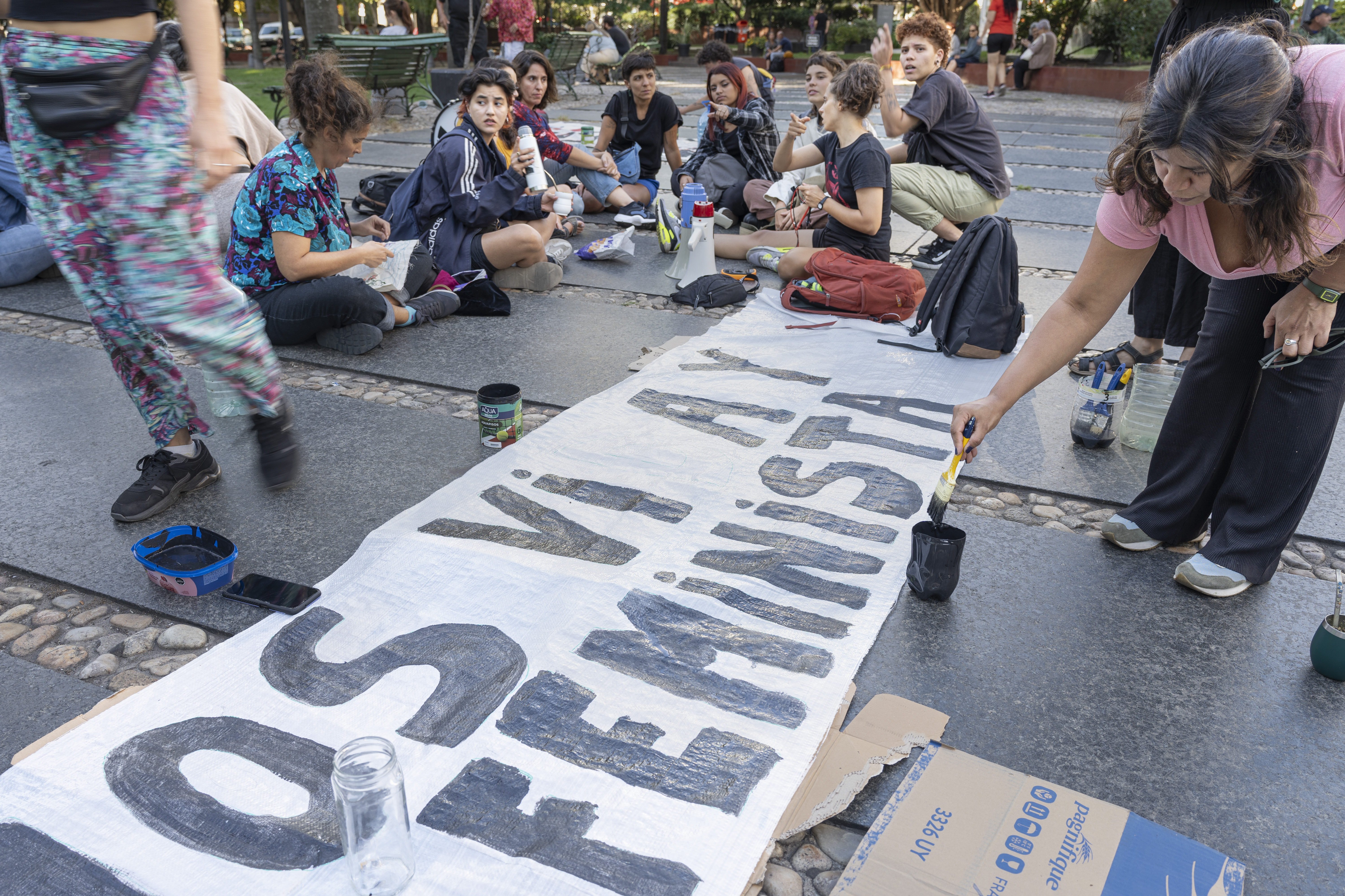 Jornada de preparación para el 8 de Marzo convocada por Tejido Feminista en la Plaza Libertad. 3 de marzo de 2023.