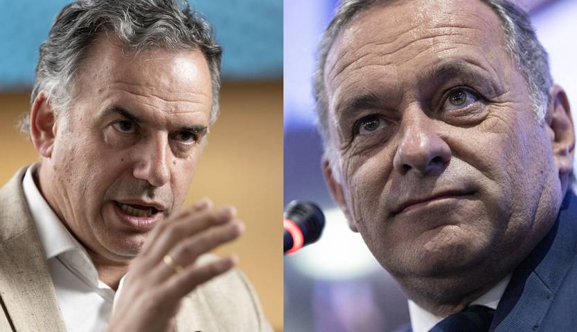 Yamandú Orsi y Álvaro Delgado. Fotos: Camilo dos Santos y Ernesto Ryan