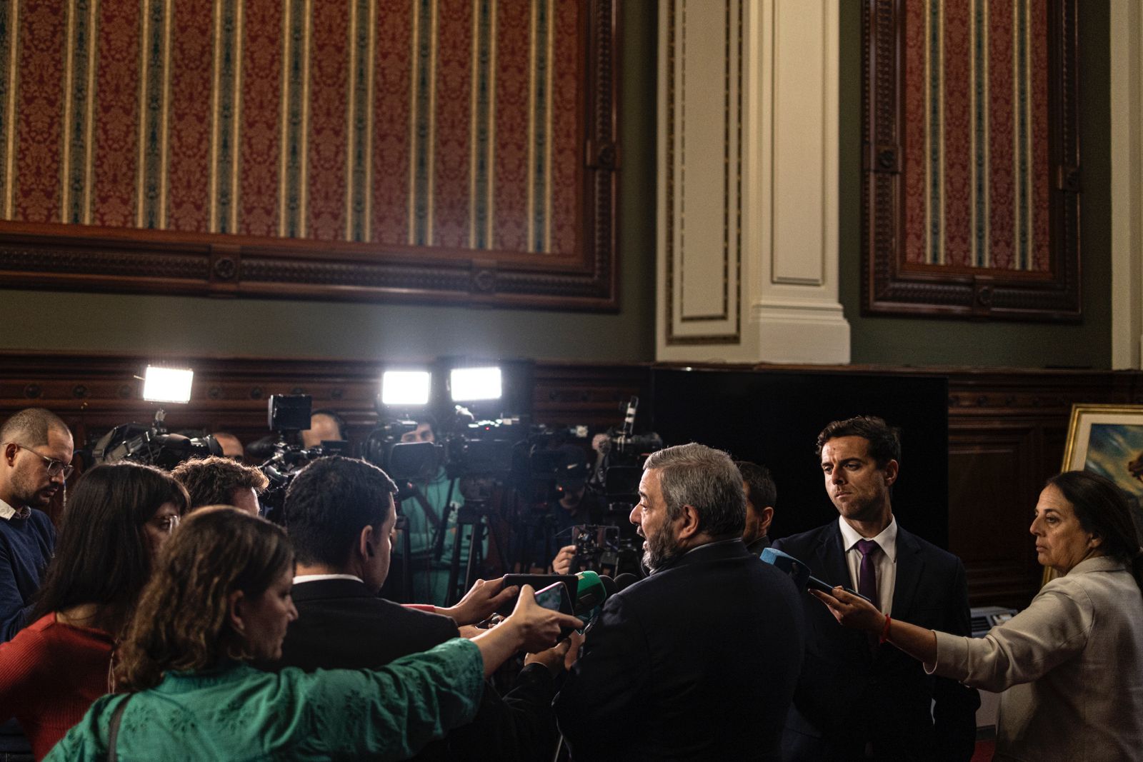 Mario Bergara, el 17 de abril, en rueda de prensa en el Palacio Legislativo.