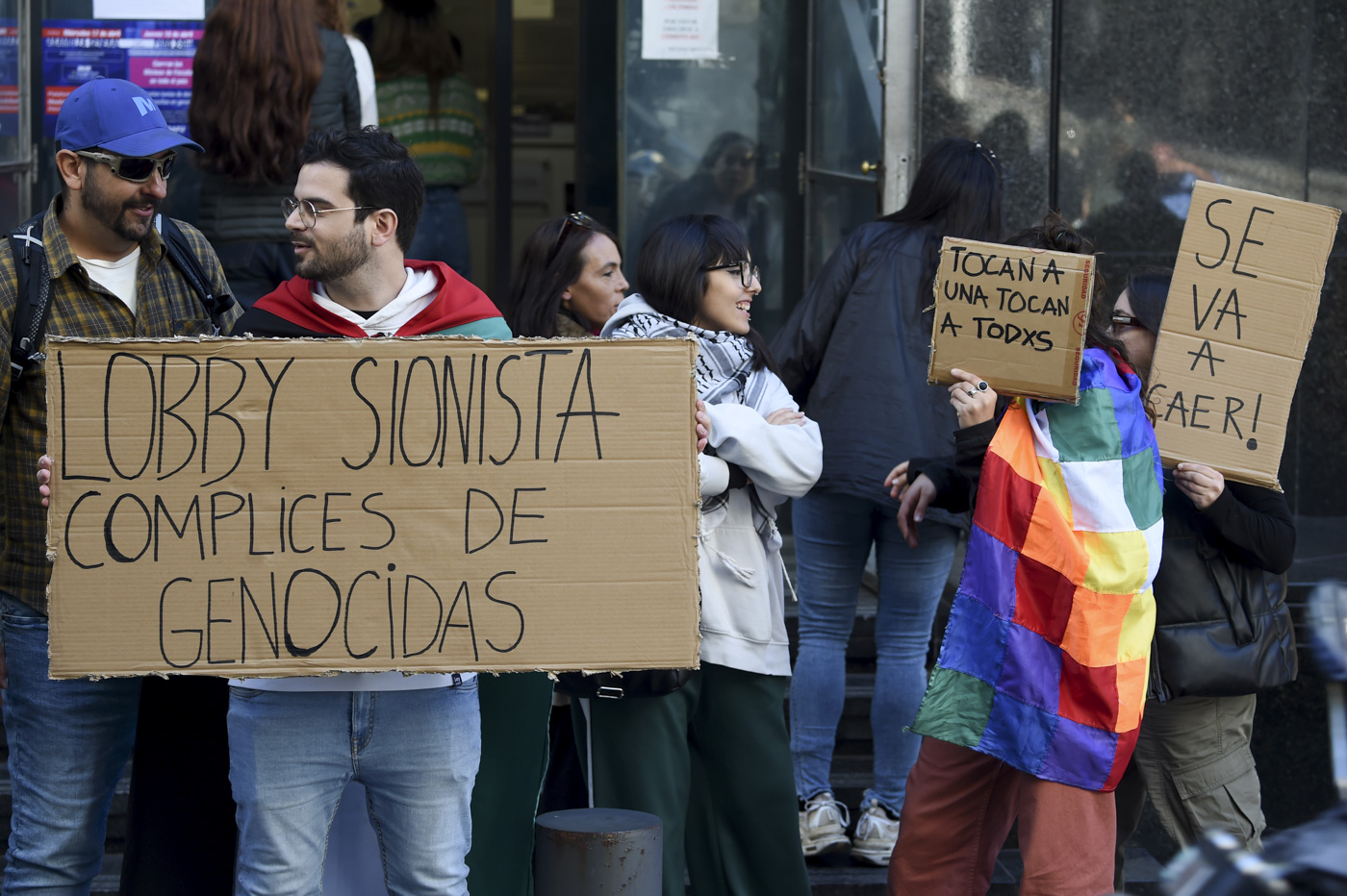 Manifestantes frente a la sede de Fiscalía en la calle Cerrito.