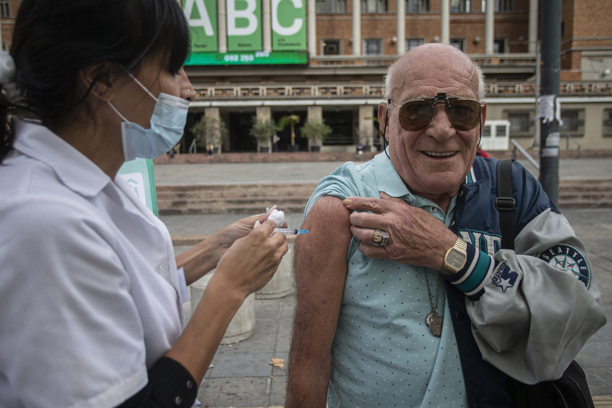 Campaña de vacunación contra la gripe, en la explanada de Intendencia de Montevideo (archivo, abril de 2023).