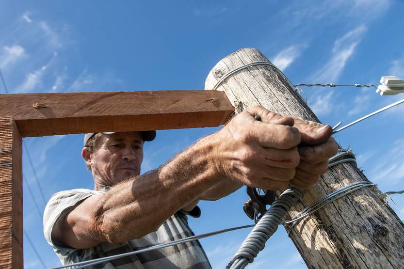Víctor López, alambrador de Nueva Helvecia (archivo, febrero de 2024).