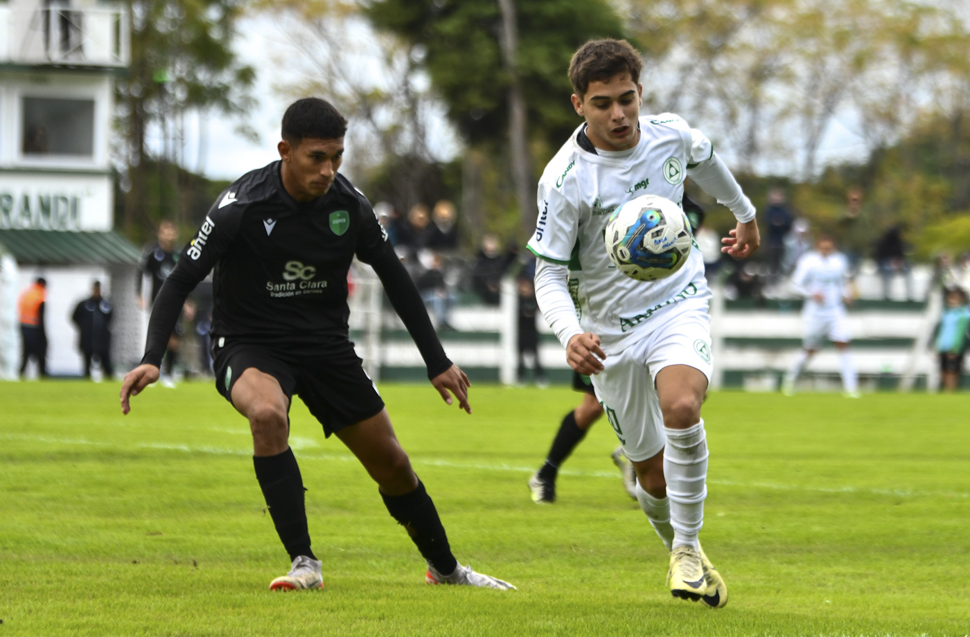 Santiago González, de Cooper, y Lucas Carrizo, de Plaza Colonia, en el encuentro por la tercera fecha de la fase regular de la Segunda División Profesional (archivo, mayo de 2024).