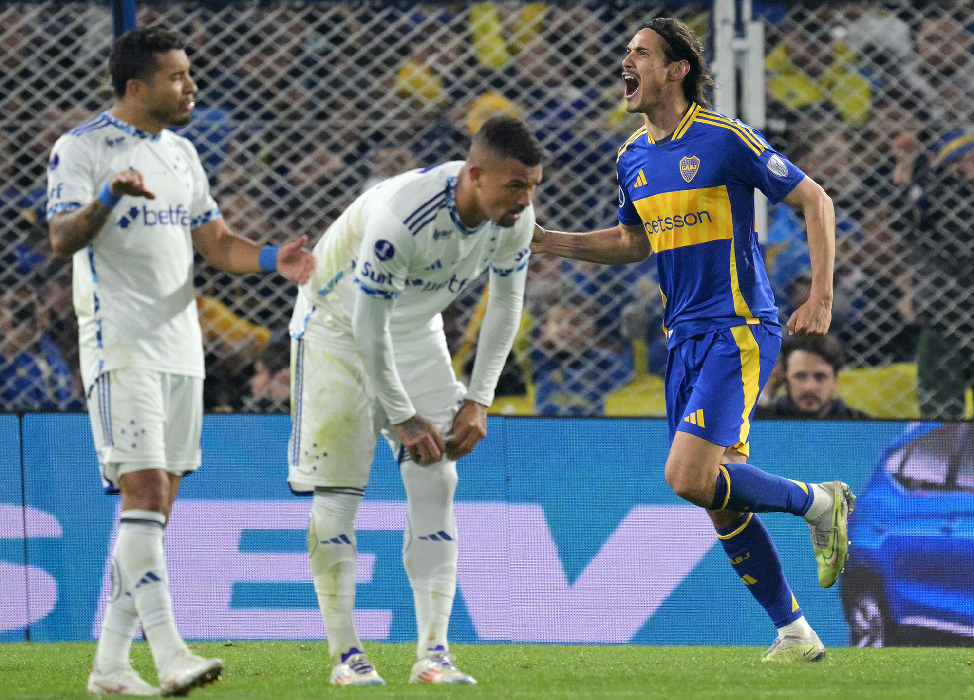 Edinson Cavani, de Boca Juniors, luego de anotar un gol a Cruzeiro, el 15 de agosto en el estadio La Bombonera, en Buenos Aires.