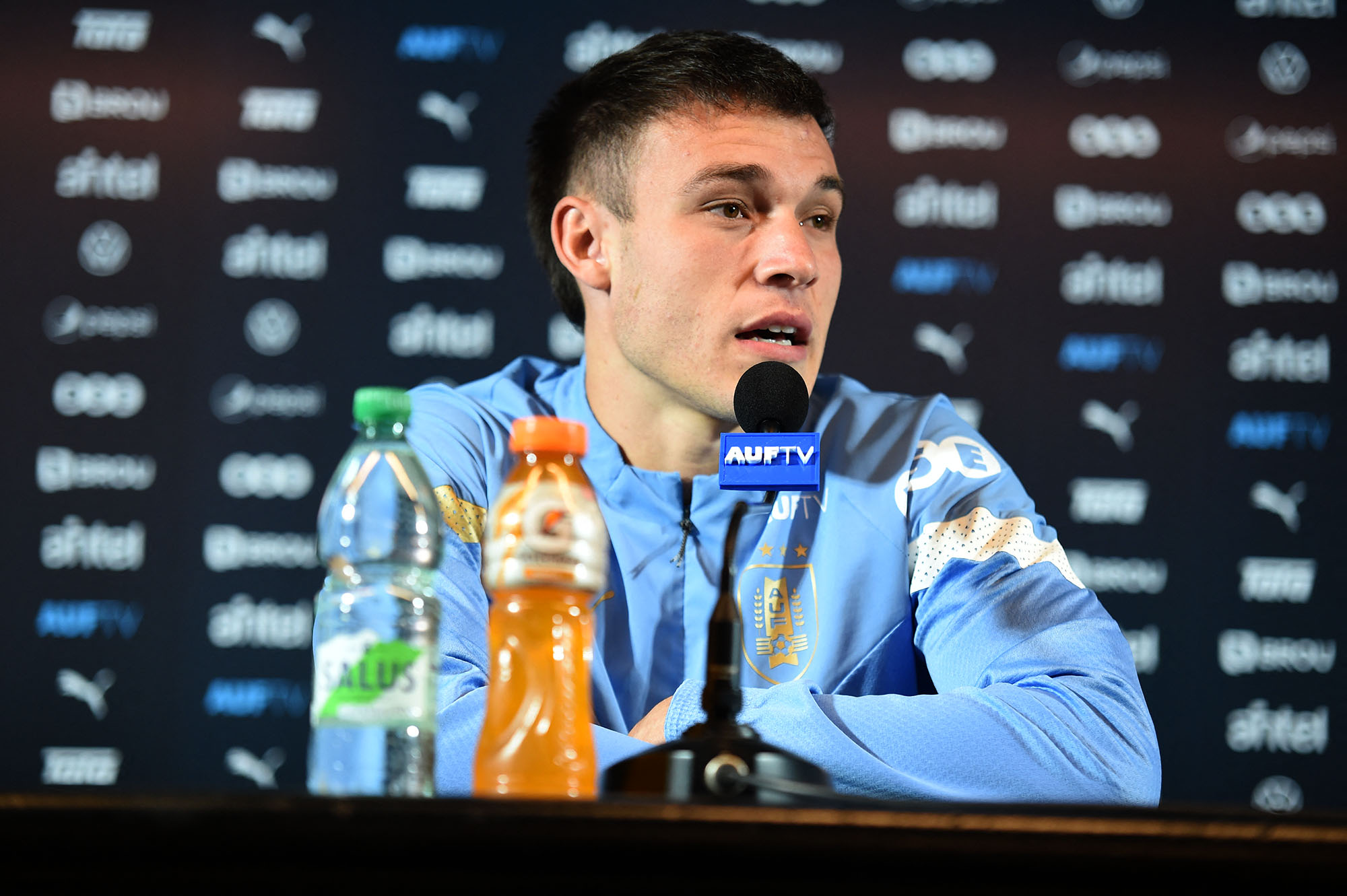 Manuel Ugarte, en una conferencia de prensa en el estadio Centenario (archivo, junio de 2023).