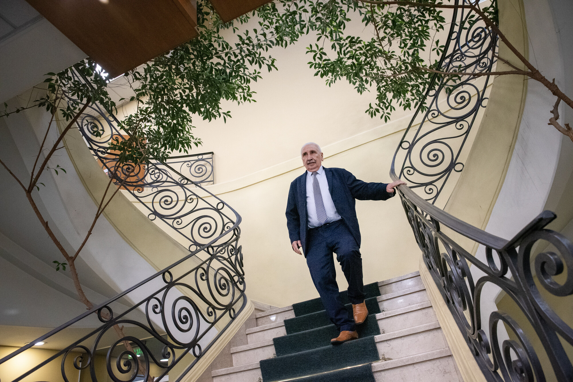 Juan Gómez antes de una conferencia de prensa, el 30 de agosto, en la sede de la Fiscalía de la calle Paysandú, en Montevideo.