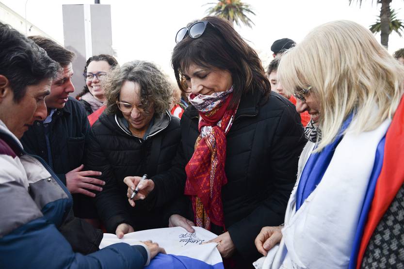 Blanca Rodríguez, durante una recorrida por el centro de Maldonado.