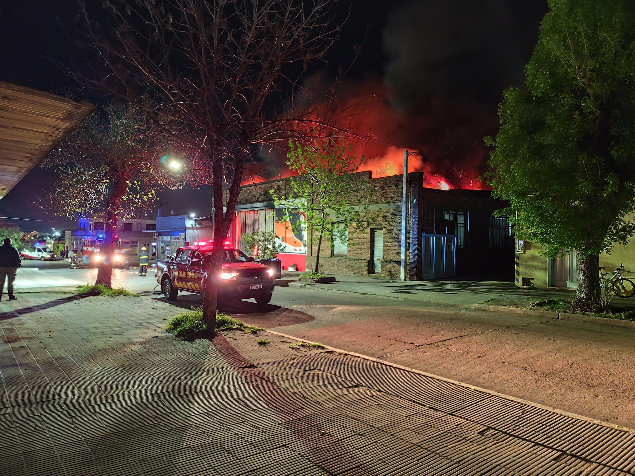 Incendio en galpones de la agencia de ómnibus Berruti. Foto: gentileza del portal TV ABC Palmira