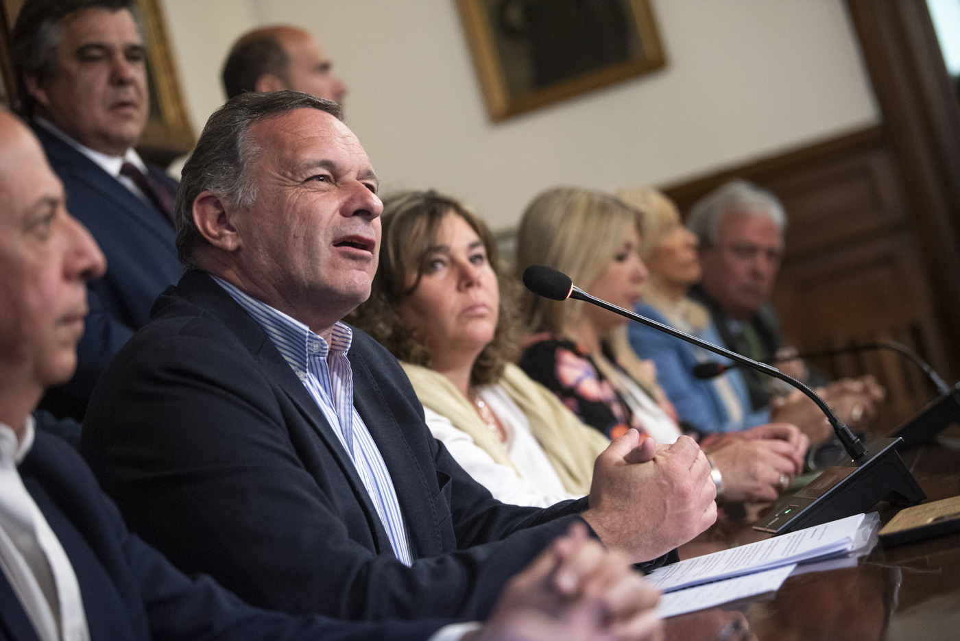 Álvaro Delgado durante la conferencia de prensa en la Casa del Partido Nacional.