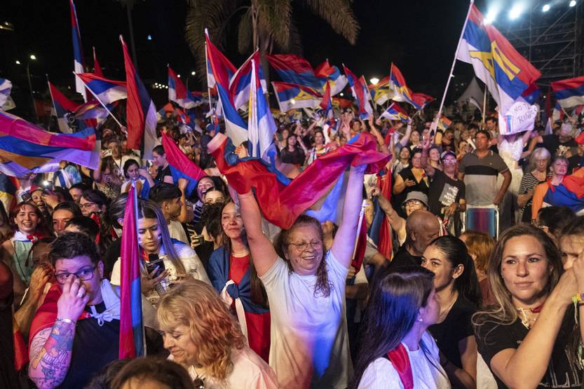 Frenteamplistas en la rambla próximo al hotel NH Columbia tras los resultados en el balotaje.