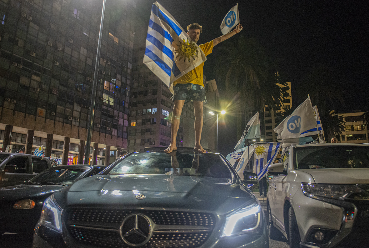 Festejos por el tiunfo del NO en el referéndum para derogar la LUC, el 27 de marzo de 2022, en Plaza Independencia Foto: Alessandro Maradei
