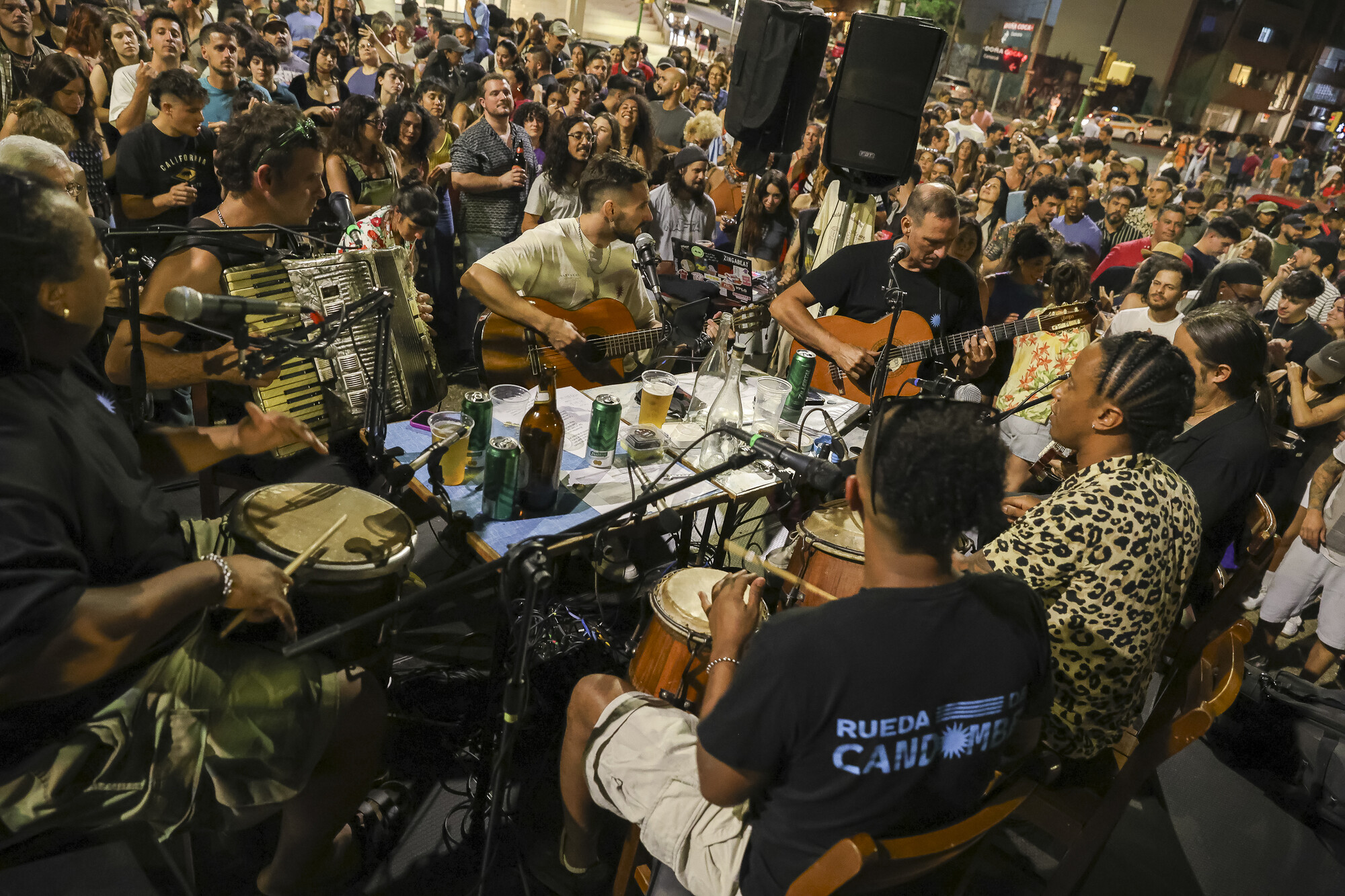 Rueda de candombe, en Plaza España, Montevideo (archivo, diciembre de 2024).